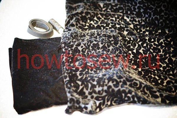 Бархат-стрейч эластичный по ширине, панбархат – модификация бархатной ткани, имеющая четкий объемный рисунок, резинка шириной 2÷3 см, нитки.