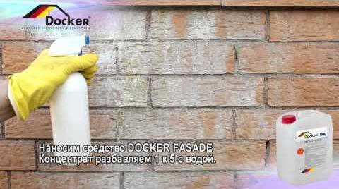 - Docker fasade. Химический раствор, который проникает глубоко в поверхность плитки и разрушает соли, вызывающие образование белого налета.
