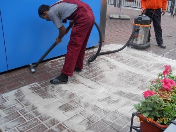 Для очистки тротуарной плитки от свежих загрязнений можно использовать строительный моющий пылесос.